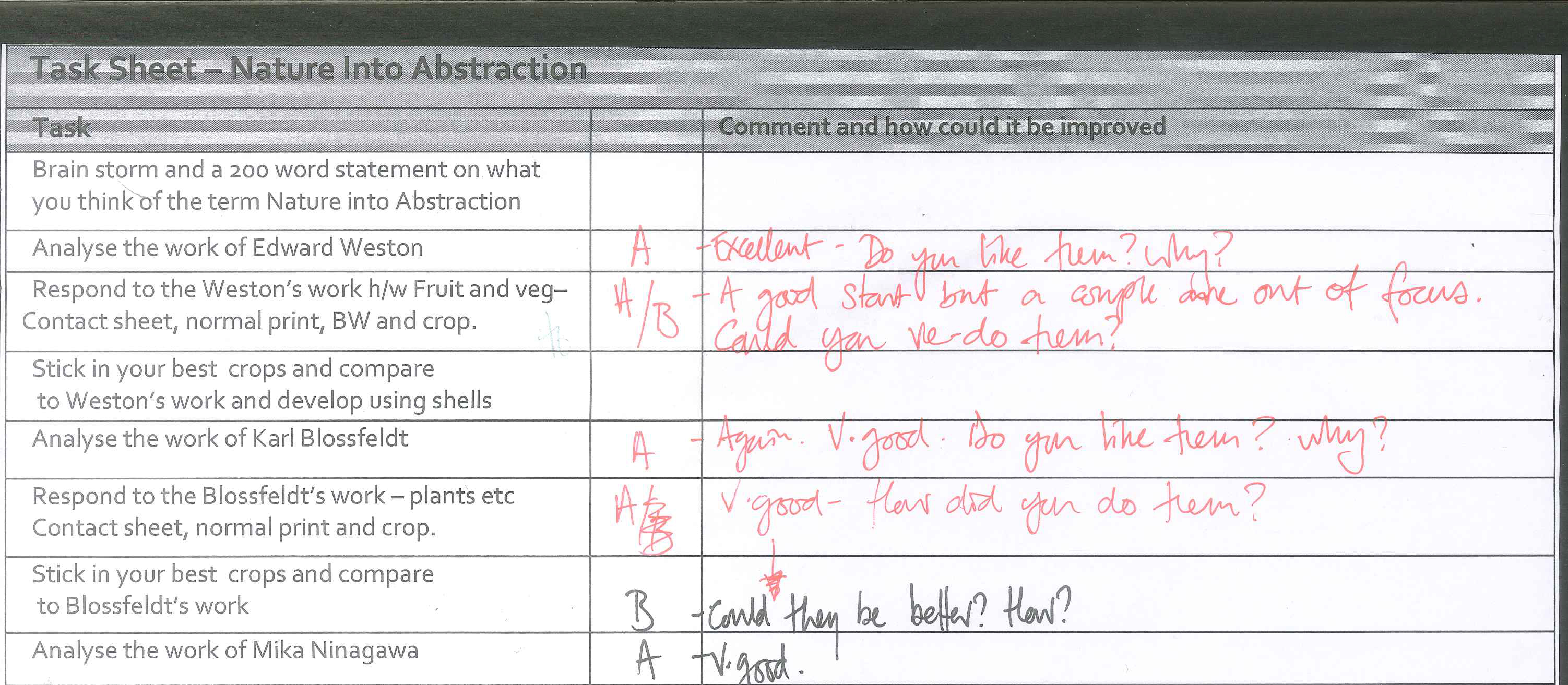 This is a classic scheme of work format but very unhelpful for parents and students. So to help students take charge of their work and to inform parents and carers about the requirements of the project/unit of work we came up with mini-schemes. This sharing of the big picture with students is very powerful and allows parents to see for themselves where their child is in relation to the work needed within the timeline and is an excellent simple support for teachers in monitoring student progress through the course content.