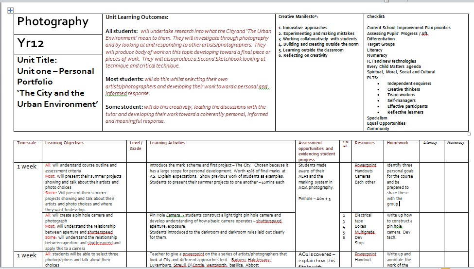 We have also undertaken to publish all of our curriculum documentation on the school website so that it is accessible to parents and carers and below is an example of a Yr12 SOW.